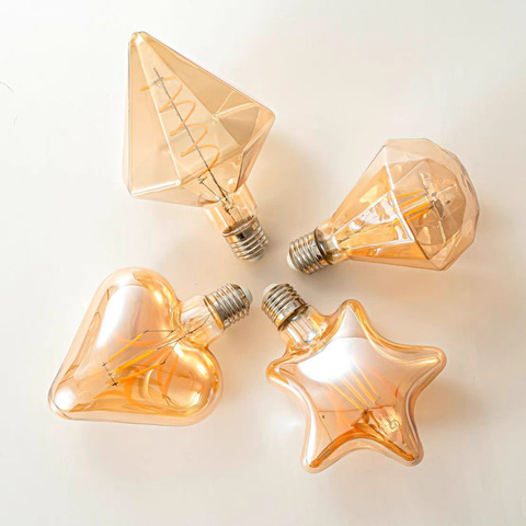 빈티지 4W LED 에디슨 전구 E26 별 하트 모양의 장식 전구 AC/DC 전원 공급 장치 바 및 호텔 장식용 유리 본체