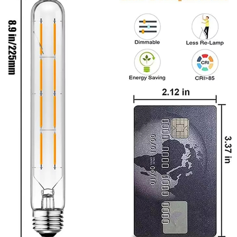 T185 T225 T300 딥 디밍이 가능한 빈티지 에디슨 LED 필라멘트 전구 2200K 긴 관형 B22 12W 주거용 홈 장식 ETL