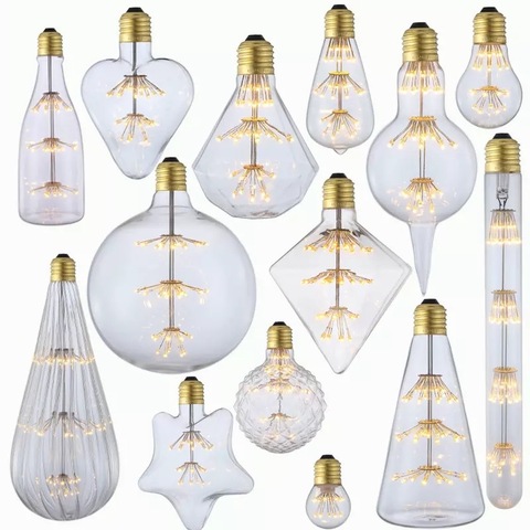 Lâmpada de led decorativa estilo de edison, antiguidade, branco quente, regulável, estilo de fogos de artifício
